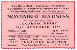 first band to play at the then recently-opened Mecca Locarno dance-hall on Babington Lane [now a Chinese restaurant!].
